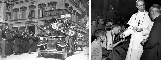 На заключительном этапе войны папа Пий XII во всех своих воззваниях подтверждал ставший после освобождения Рима важнейший для политики Ватикана поворот к демократии и к внешнеполитической ориентации на США.