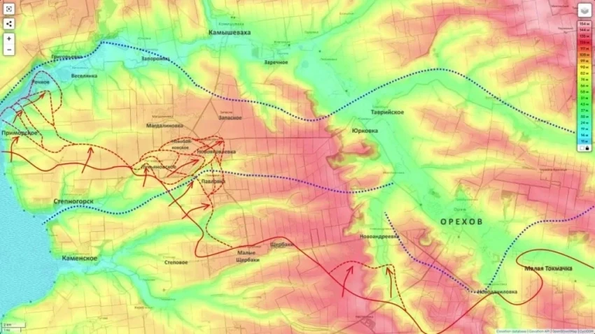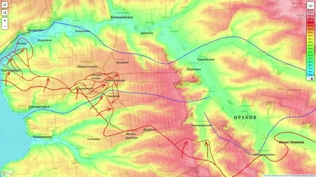 Замысел командования на этом участке становится очевидным: выход к линии реки Конка с перспективой форсирования водной преграды. Создание плацдарма на правом берегу откроет возможность для наступления непосредственно на город Запорожье. Также рассматривается сценарий флангового удара в направлении Юрковки, что позволит обойти укрепленный Орехов с запада, взяв его в клещи.