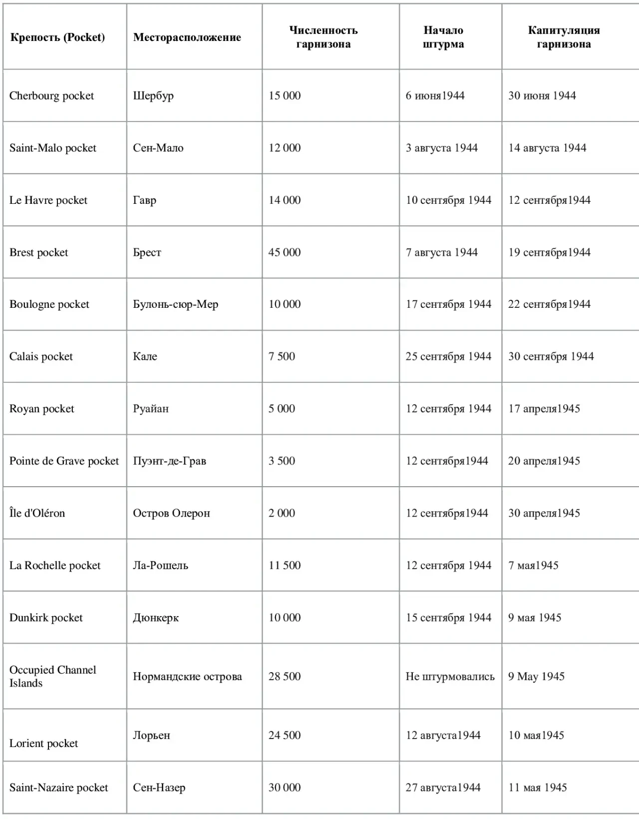 19 января 1944 года Адольф Гитлер объявил 14 участков атлантического побережья Франции, входившего в состав так называемого Атлантического вала (нем. Atlantikwall), а также оккупированные британские Нормандские острова в проливе Ла-Манш, Атлантическими крепостями (Atlantikfestungen). В англоязычных источниках они именуются «атлантическими карманами» (“Atlantic pockets”). Некоторые из этих крепостей стойко сопротивлялись даже после 9 мая 1945 года, находясь вдалеке от линии Западного фронта.