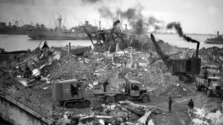 Разрушения в порту Шербура