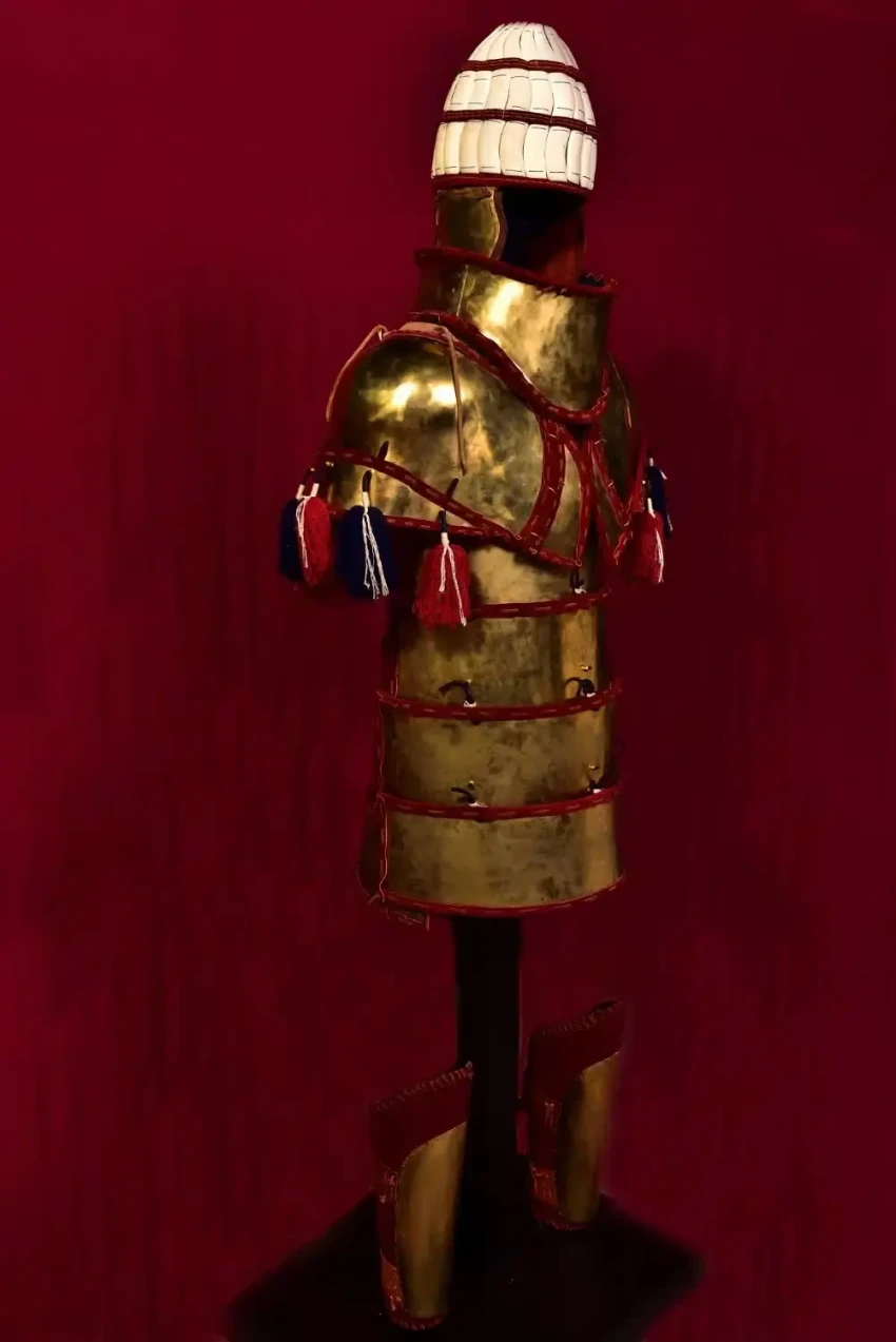 Чешуйчатые микенские доспехи, воссозданные по мотивам декоративной шкатулки из слоновой кости из Энгоми (Кипр). Фото: Димитриоса Карвунциса