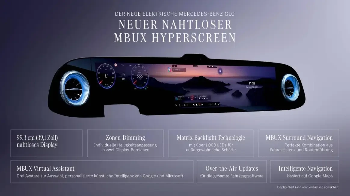 MBUX способен учитывать контекст и вести связный диалог. Для расширения мультимедийных возможностей в систему напрямую интегрированы сервисы Disney+, YouTube, RIDEVU и Amazon Music.