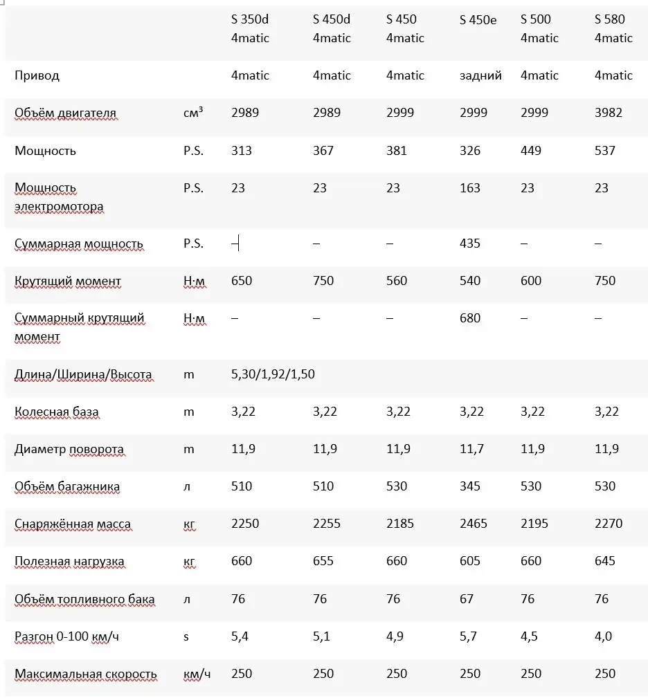 В моделях S 580E 4MATIC и S 450E с удлиненной колесной базой система, состоящая из шестицилиндрового бензинового двигателя и электромотора, развивает мощность до 430 кВт (585 л.с.) и крутящий момент 750 Нм, а это на 55 кВт больше, чем у предыдущего поколения.