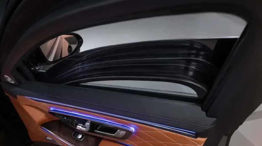 В отличие от Hyperscreen в EQS, где даже приборная панель размещена под общей стеклянной поверхностью, здесь 12,3-дюймовый дисплей водителя (при желании можно заказать с трёхмерным изображением) по-прежнему выполнен как отдельный элемент. При этом 14,4-дюймовый центральный экран и 12,3-дюймовый дисплей пассажира на переднем сидении объединены единой стеклянной панелью, формируя визуально цельное технологичное пространство.