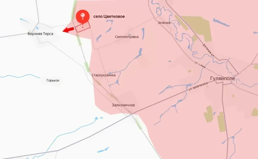 Отбив контратаки противника к северу от Гуляйполя, российские войска продолжили продвижение в западном направлении. Стало известно о том, что Вооружённые силы России, нанеся огневое поражение противнику к северо-западу от Гуляйполя, освободили село Цветковое Запорожской области.