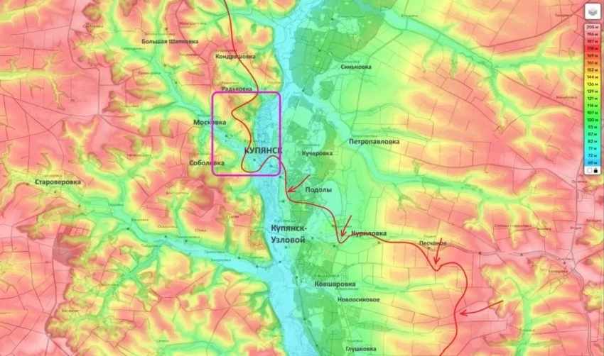 На Купянском фронте ситуация стабильно напряжённая. ВС РФ давят восточнее реки Оскол, ВСУ удерживают западную часть города.