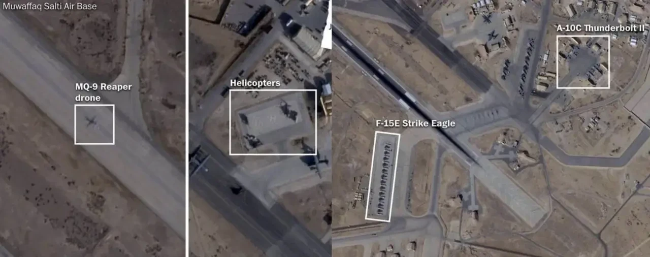 18 истребителей-невидимок F-35A Lightning II вылетели с авиабазы Лейкенхит в Великобритании и направились в Муваффак-Салти в центральной части Иордании, которая стала центральным узлом для американских тактических истребителей и других самолетов, как и в операции «Полуночный удар».