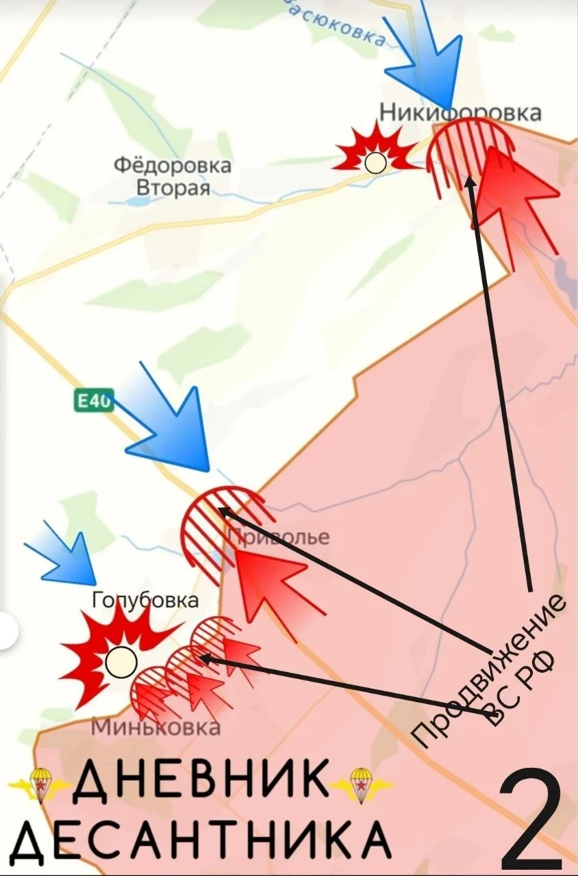 На Купянском фронте (левый берег Оскола) армия России совершила мощный рывок, продвинувшись на 2 километра южнее Кучеровки, подпирая село с юга.