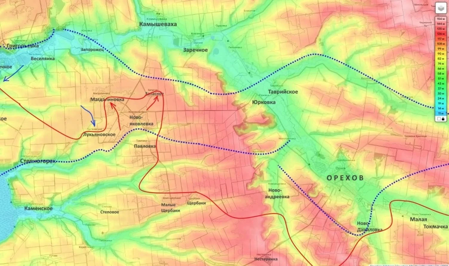 Однако в целом на данном участке фронта инициатива находится в руках российских бойцов. После того, как ВС РФ дожмут Вооружённые силы Украины (ВСУ) в этих населённых пунктах, они получат возможность охватывать Орехов с северо-запада и в дальнейшем двигаться на Запорожье.