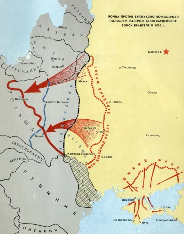 Сразу отмечу, что официально советско-польская война является частью Гражданской войны, длившейся с 1917 по 1922 год. Тем не менее, этот крупный военный конфликт необходимо рассмотреть, так как в его процессе были созданы первые наработки по воздействию на войска и население вражеского государства.