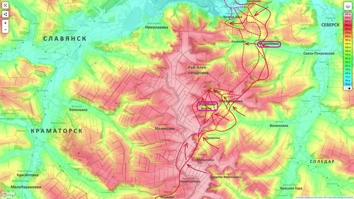 Необходимо подчеркнуть, что на Славянском направлении ВС России ещё не завершили освобождение Красного Лимана. Однако это не мешает движению войск в направлении главного укрепрайона противника на Донбассе.
