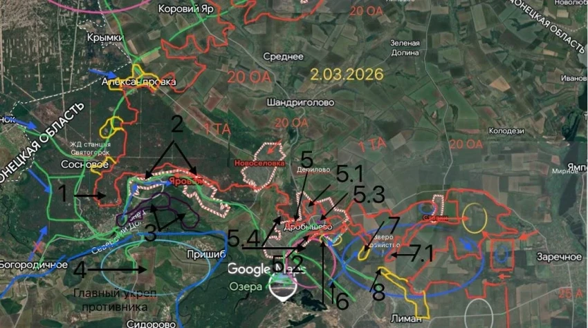 Главной победой дня стало освобождение поселка Дробышево, что дает прямой выход к западным окраинам Красного Лимана. В самом городе продолжаются изнурительные уличные бои, где наши подразделения продвигаются в районах Зеленого Клина и Масляковки.