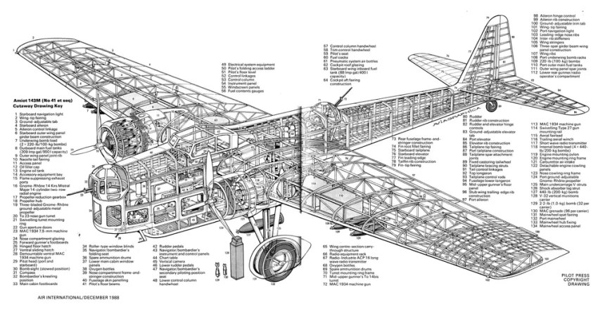 Компоновочная схема Amiot 143 из Airwar.ru (Серийные машины, начиная с 41-й)