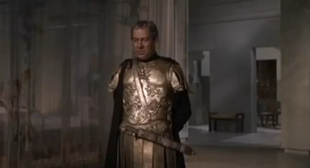 1.Пересмотрите старый, 1963 года выпуска, кинофильм «Клеопатра». Помимо сюжета это просто энциклопедия внешнего облика тогдашних римлян и египтян, а также воинского вооружения. Есть, правда одна труднообъяснимая неточность. Римские воины всех рангов в этом фильме носят мечи на поясе слева и почти что горизонтально. А надо – справа вертикально! И эта ошибка бросается в глаза. Но вот доспехи и шлемы воспроизведены с высоким уровнем достоверности. Кадр из кинофильма «Клеопатра». На нем Цезарь в кирасе с чеканными украшениями. Прямо-таки готовый образец для современного индийского доспешного производства…