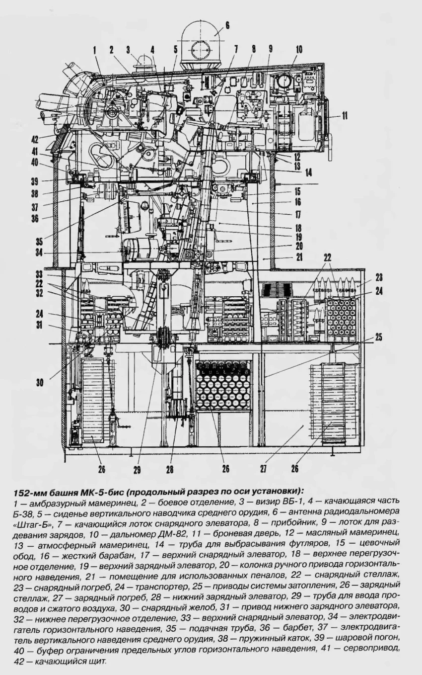 Разрез башни МК-5-бис (Кузин В., Никольский В. Военно-морской флот СССР, 1945-1991)