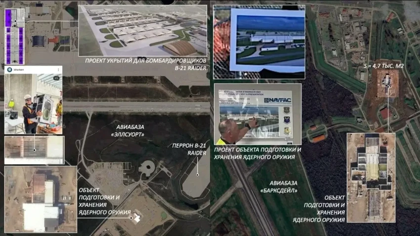 Одновременно с этим США активно готовят инфраструктуру для развертывания новых и увеличения загрузки существующих носителей. Программа закупки 76 защищенных терминалов спутниковой связи FAB-T FET позволит вернуть в ядерный статус 30 бомбардировщиков B-52, доведя их общее количество в этом качестве до 76 единиц. Для ускорения работ по обновлению этих машин до версии B-52J на авиабазе Тинкер в 2025 году был возведен новый цех. Параллельно разворачивается программа создания перспективного бомбардировщика B-21 Raider, парк которого должен составить не менее 100 единиц, для чего на заводе в Палмдейле построен новый сборочный комплекс. Расширяется и география базирования: к действующим авиабазам добавляются Барксдейл, Эллсуорт и Дайс, на территориях которых строятся современные объекты для обслуживания и хранения ядерного оружия.