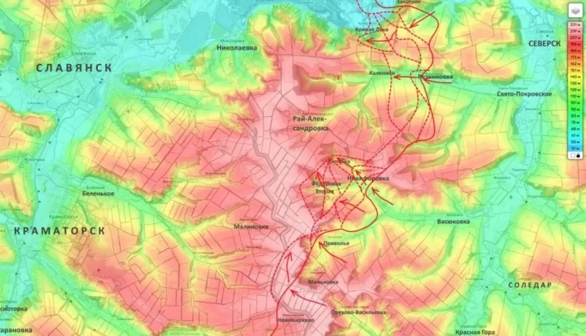 Одновременно поступают данные об усилении давления ВС РФ на Долгую Балку с восточного направления. Это село расположено немного юго-западнее Ильиновки, через которую, помимо прочего, проходит дорога, соединяющая Константиновку и Долгую Балку.