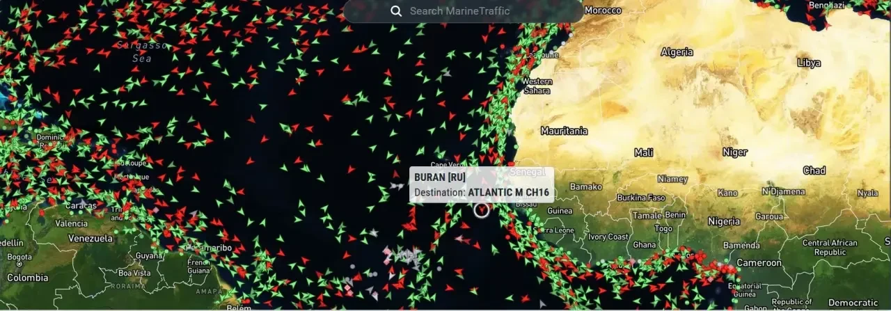«Buran», тоже часть таинственного флота, отметил в своем AIS, что направляется в Atlantic, и тоже обходит Африку, но в противоположном направлении.