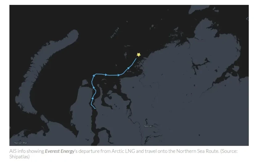 Согласно информации gcaptain, в августе 2024 года газовоз, тогда еще называвшийся Everest Energy и ходивший под флагом Палау, стал третьим судном, принявшим груз с терминала Утренний проекта Arctic LNG-2. Это тот самый проект «Новатэка», который давно находится под разнообразными санкциями и до сих пор не может развернуться на полную мощность.