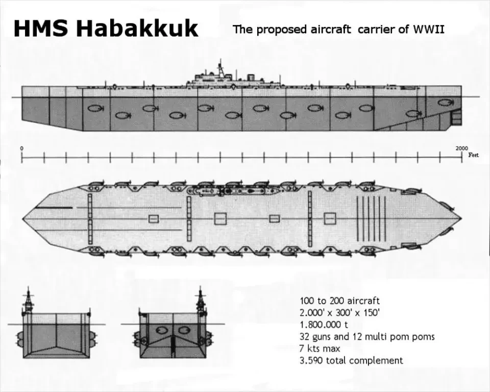 Во время Второй мировой войны появилось немало оригинальных и довольно фантастических проектов военной техники. Одним из них был ледяной авианосец “Habbakuk”.