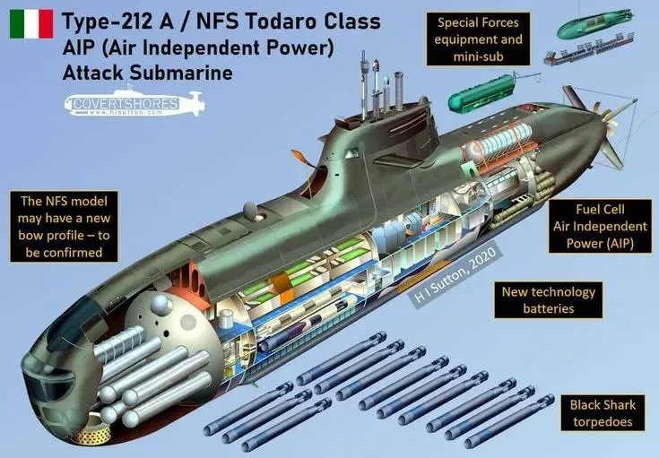 Дело в том, что на сегодняшний день подводный флот потомков римлян представлен четырьмя дизельными подлодками класса Sauro, самая молодая из которых — S525 «Gianfranco Gazzana Priaroggia» — вошла в строй больше 30 лет назад — в лохматом 1993 году, и четырьмя значительно более новыми немецкими субмаринами проекта 212А: самой молодой ещё десяти лет не стукнуло. В общем, на замену Sauro и строят U212NFS.
