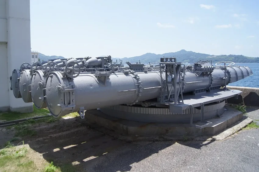 Реальный снимок аппарата Type 92, правда, не на эсминце, а на крейсере «Китаками». Но аппараты абсолютно такой же, с таким же кожухом, ставился и на эсминцы