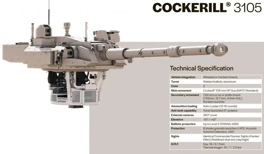 Как отметили в компании, модернизация предусматривает установку новой башни вместо базовой. Башня Cockerill 3105 оснащена современными оптическими системами, позволяющими обнаруживать цели на расстоянии до 18 км днем и 15 км ночью. Броня обеспечивает защиту от 25-мм подкалиберных снарядов и оснащена автоматом заряжания на 12-16 выстрелов.