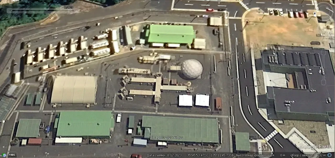 Спутниковый снимок Google Earth: РЛС AN/TPY-2 в 10 км к западу от города Куми. Снимок сделан в июне 2024 года