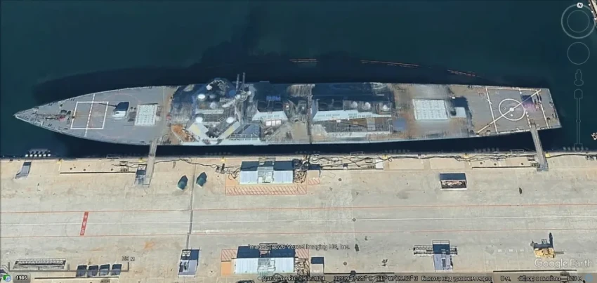 Спутниковый снимок Gооglе Еаrth: РЛС SBX-1 у пирса военно-морской базы Пёрл-Харбор. Снимок сделан в ноябре 2022 года