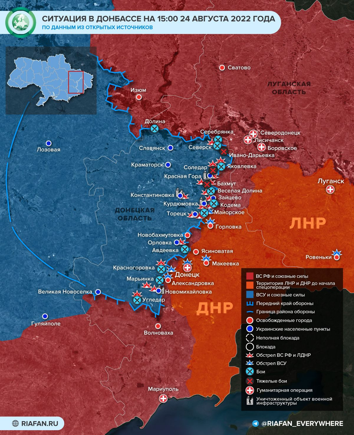 Обновленная карта боевых действий на Украине на 25 августа 2022 года, какие населенные пункты взяли под контроль российские военные