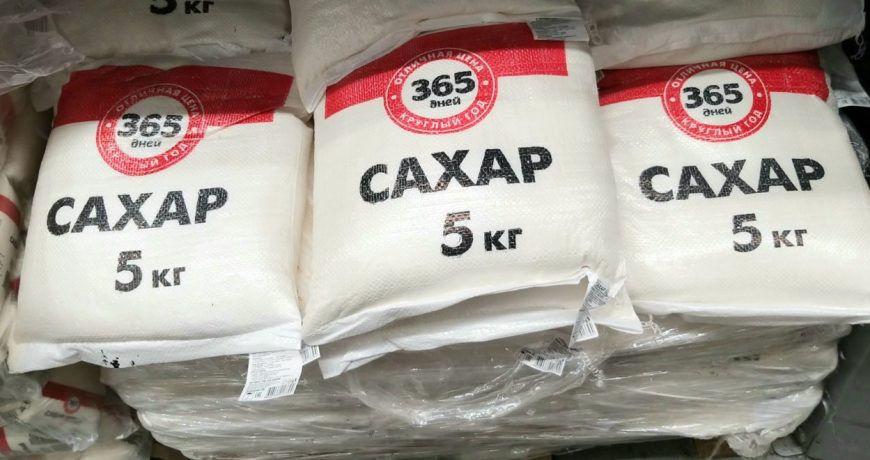 Если посмотреть, как менялись цены, то окажется, что, например, стоимость сахара-песка за последние шесть месяцев поднималась на сорок девять процентов. В январе средняя цена составила 57 рублей за килограмм, а в марте и апреле — около 85 рублей, а в июне — уже 77 рублей.