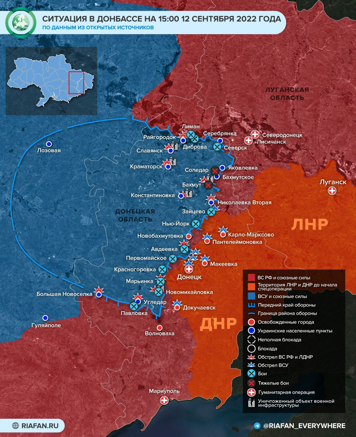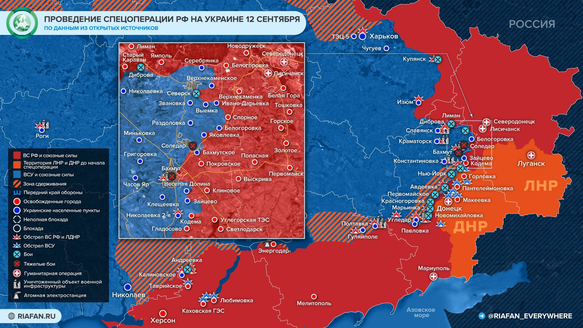 карта боевых действий на Украине и в Донбассе по данным на 13 сентября — Минобороны обновило новую карту боевых действий 13.09.2022