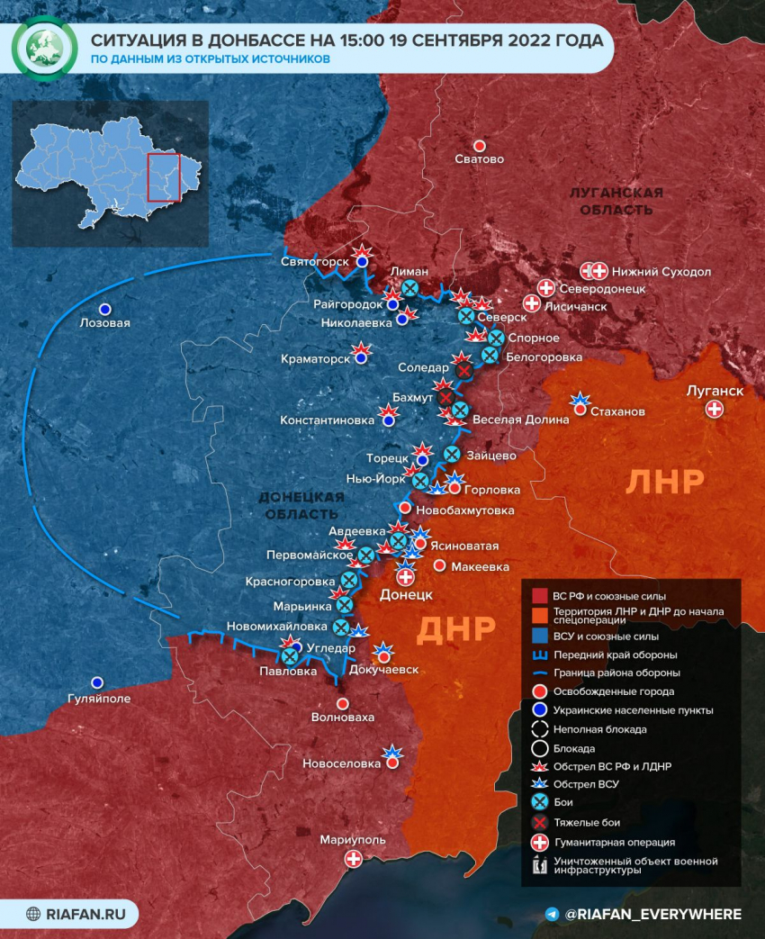 Обновленная карта боевых действий на Украине на 20 сентября 2022 года, Донбасс ждет референдумы