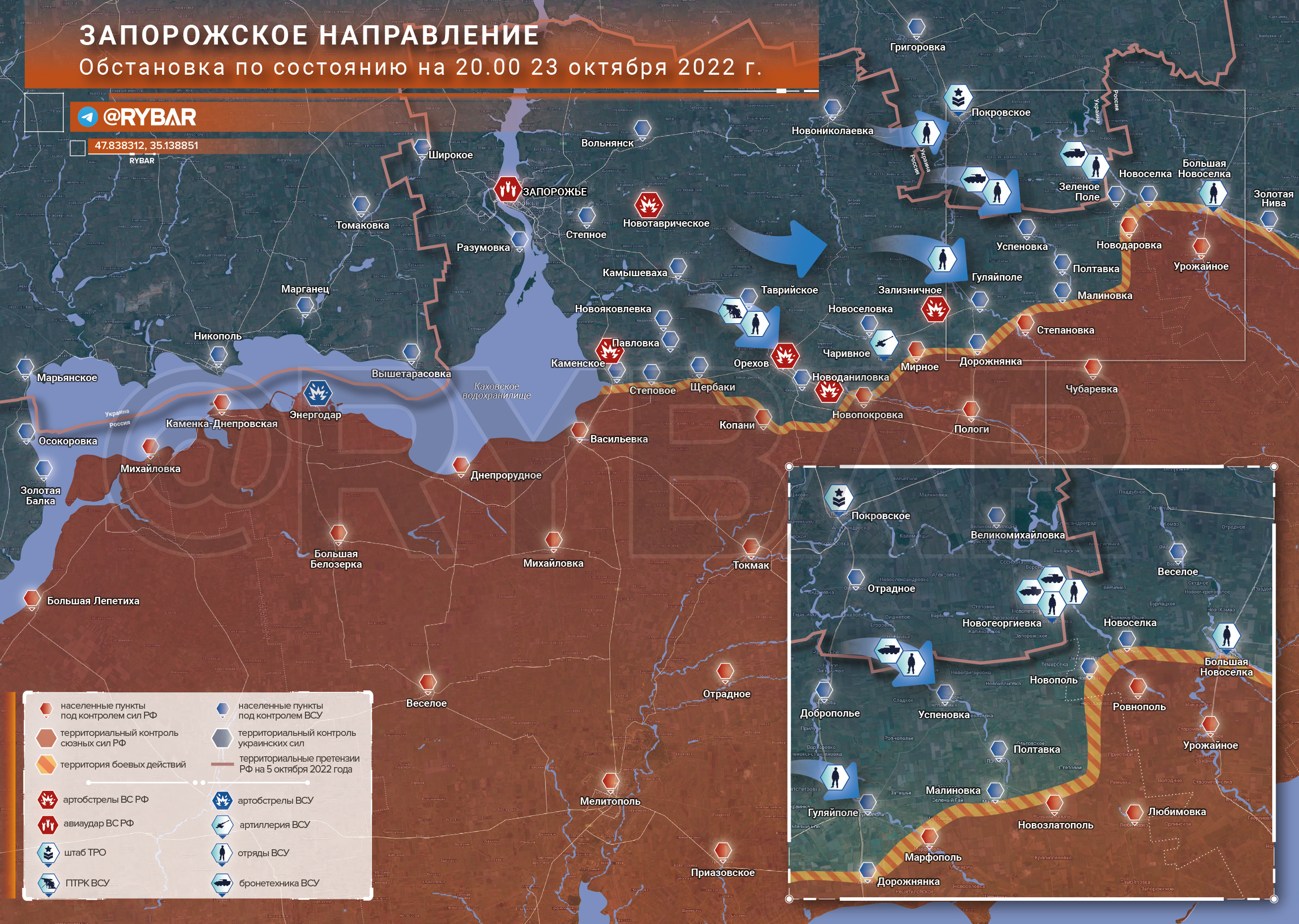 Обстановка на Запорожском направлении по состоянию на 20.00 23 октября 2022 года от Телеграм-канала «Рыбарь»