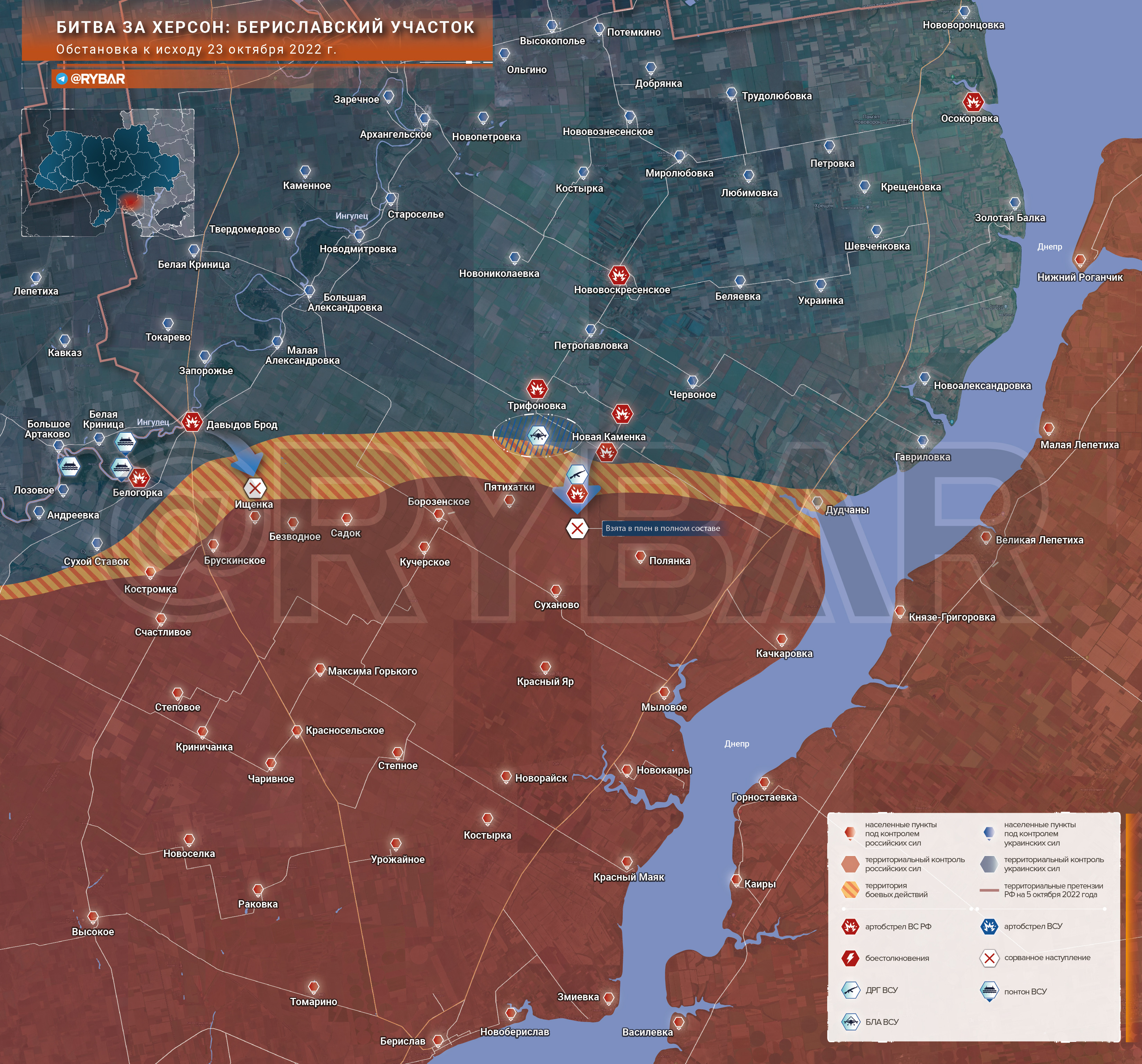 Битва за Херсон: обстановка на Андреевском и Бериславском участках к исходу 23 октября 2022 года Телеграм-канала «Рыбарь»