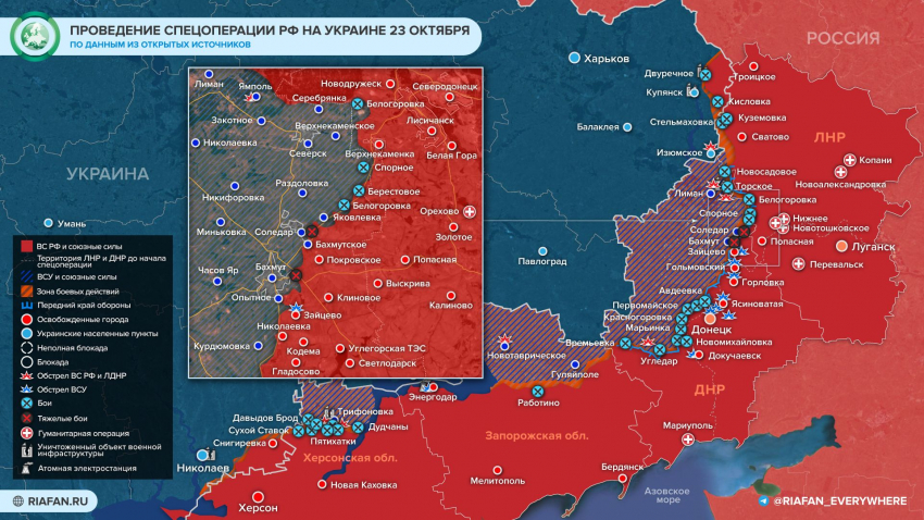 Обновленная карта боевых действий на Украине на 24 октября 2022 года, начало «судных недель» для киевского режима