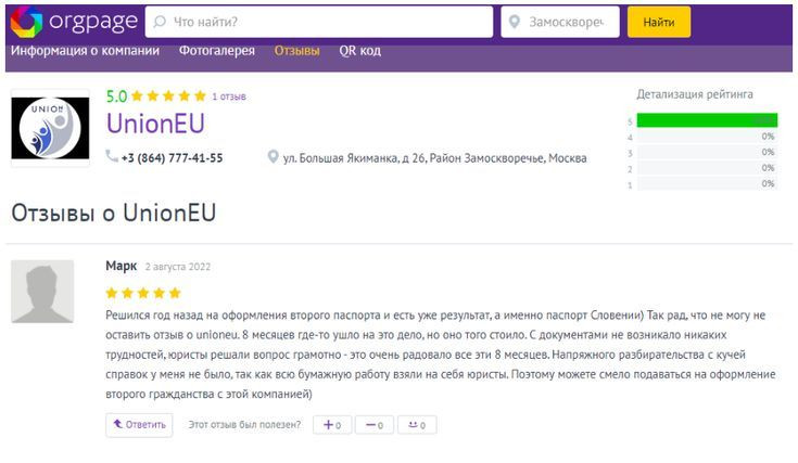 По результатам изучения оценок и мнений пользователей сети очевидно, что UnionEU.com – достаточно хорошая компания, которая придерживается взятых на себя обязательств. Подтверждение – многочисленные отзывы иммигрантов, которым можно доверять.
