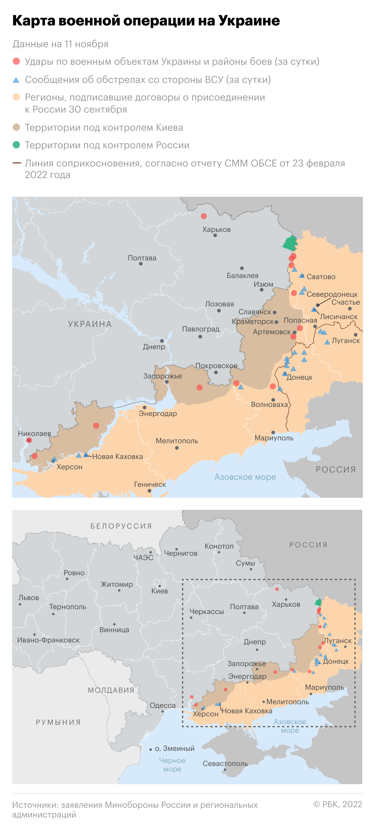 Обновленная новая карта боевых действий на Украине по данным на 12 ноября — Минобороны обновило новую карту боевых действий 12.11.2022