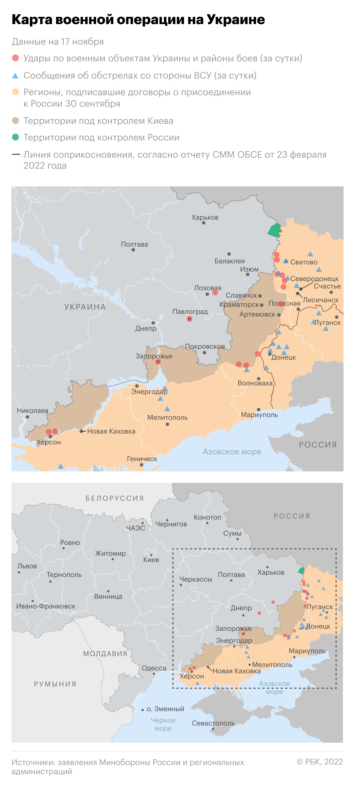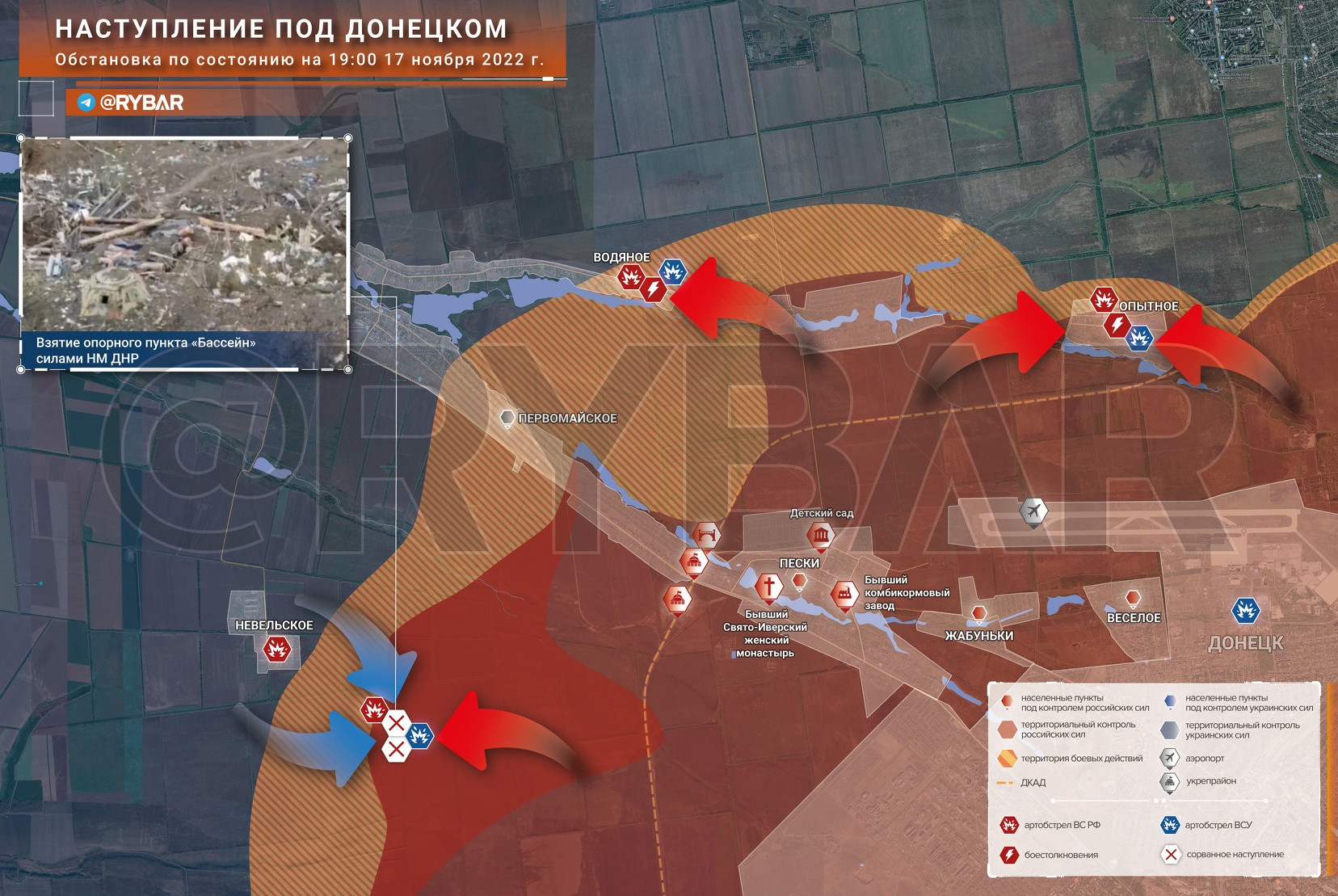 Обновленная карта специальной военной операции на Украине 18 ноября 2022 года: взрывы в центре Донецка