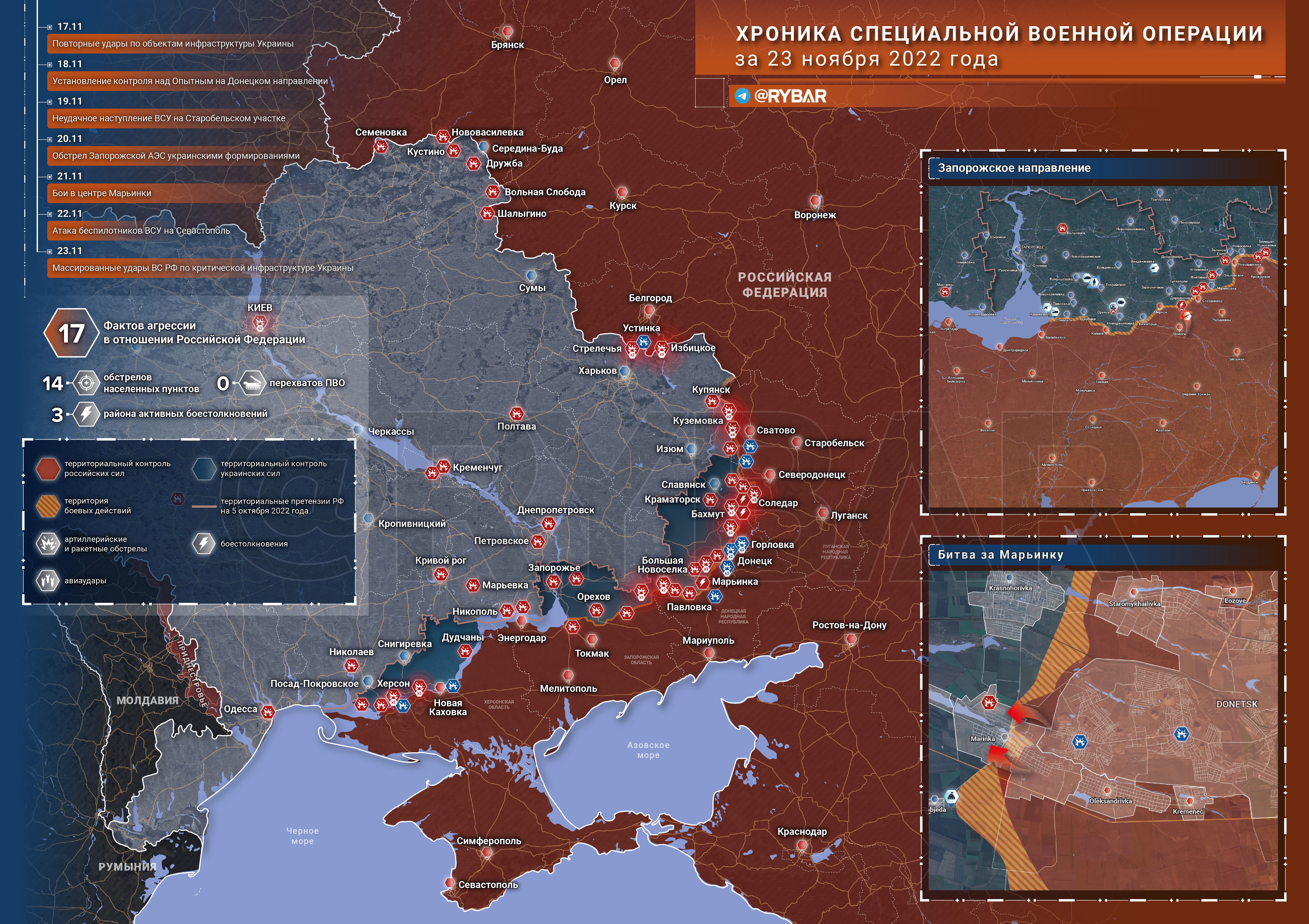 Хроника специальной военной операции за 23 ноября 2022 года от аналитического канала «Рыбарь»
