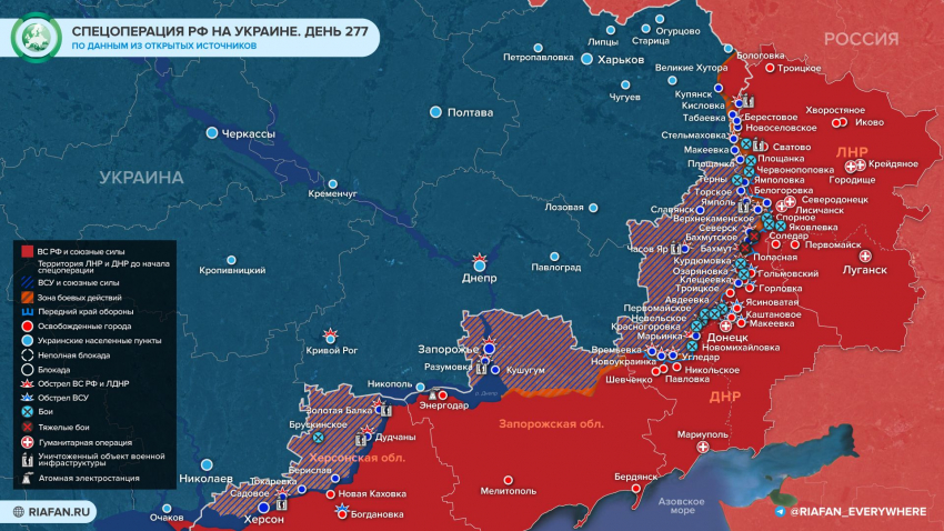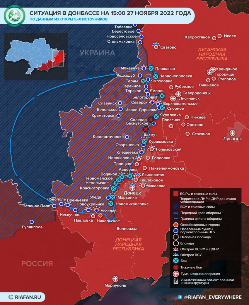 Обновленная карта специальной военной операции на Украине 28 ноября 2022 года