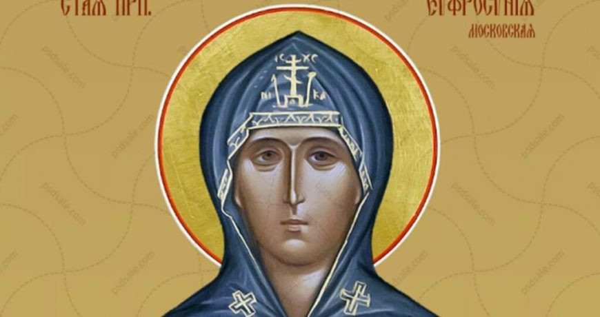 - преподобной Евфросинии (Евдокии). Она – великая княгиня Московская, дочь Димитрия Константиновича, Суздальского князя, и жена Дмитрия Донского, Московского князя. Евдокия построила храмы. Скончалась в 1407 году.