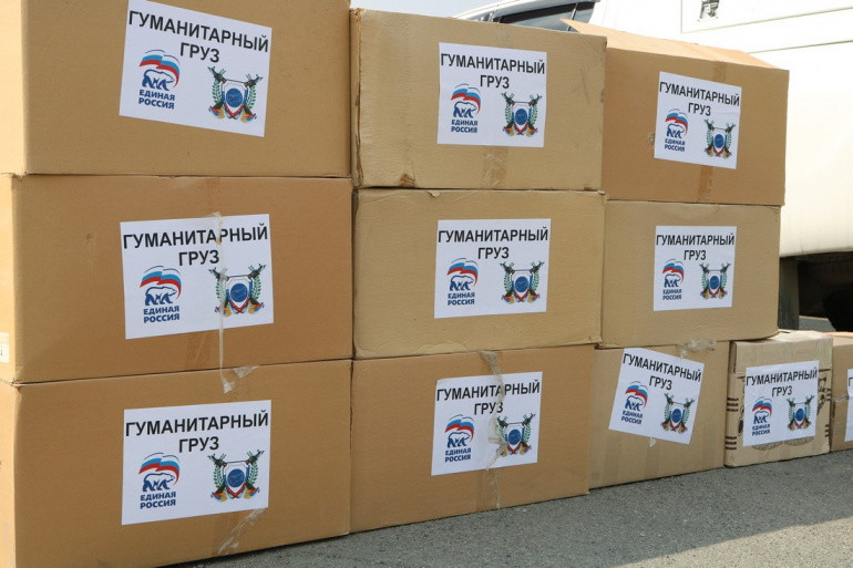 Более 30 кубометров или 10 тонн гуманитарного груза разгрузили под Луганском в батальоне обеспечения для сортировки и дальнейшего распределения