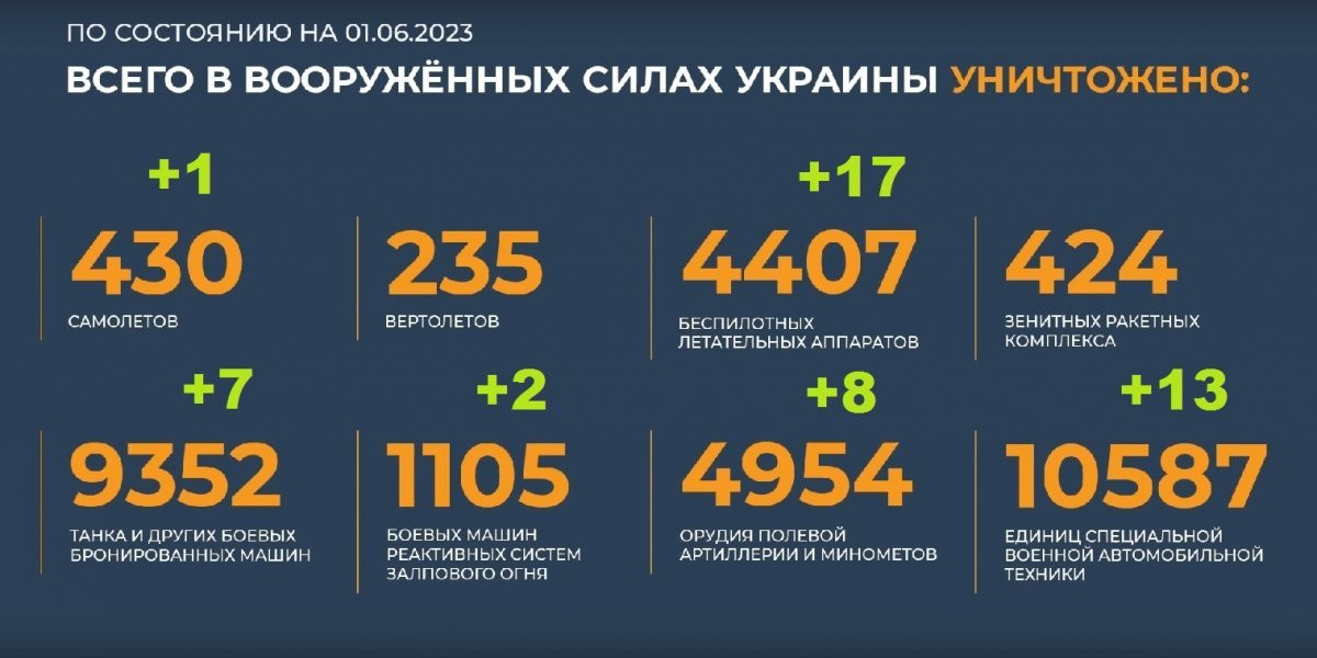 • Сводка Министерства обороны Российской Федерации 01.06.2023 г.