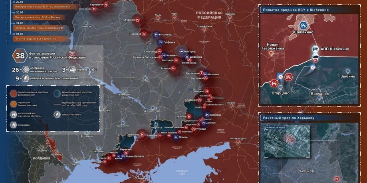 • Карта боевых действий на Украине сегодня 02.06.2023 в реальном времени на сейчас