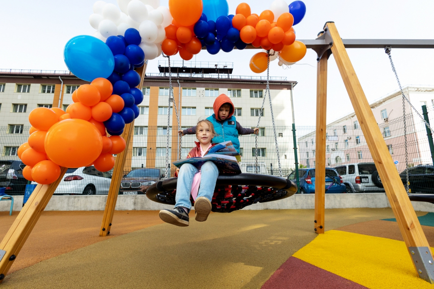 В праздничный день 1 июня на Эгершельде открылась новая детская площадка — уже третья, обустроенная Владивостокским морским торговым портом. Она удобно расположилась во дворе жилого комплекса и оборудована горками, качелями, турниками и всем необходимым для активного отдыха. Все объекты новые и отвечают требованиям безопасности, а земля покрыта специальным прорезиненным покрытием. Всех детей и их родителей на открытии встретили поздравления и разнообразные активности: аниматоры, море воздушных шаров и, конечно, угощения.