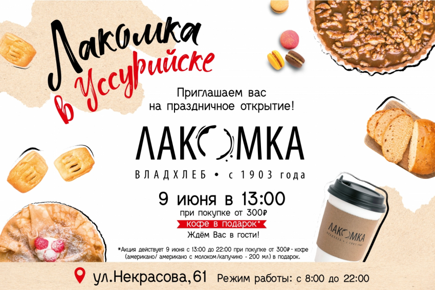 За последние годы фирменная сеть активно развивается, открывая современные кафе-пекарни во всех районах Владивостока, а в новом году “Лакомка” выходит и за пределы дальневосточной столицы. И первой точкой на карте Приморского края стал Уссурийск!
