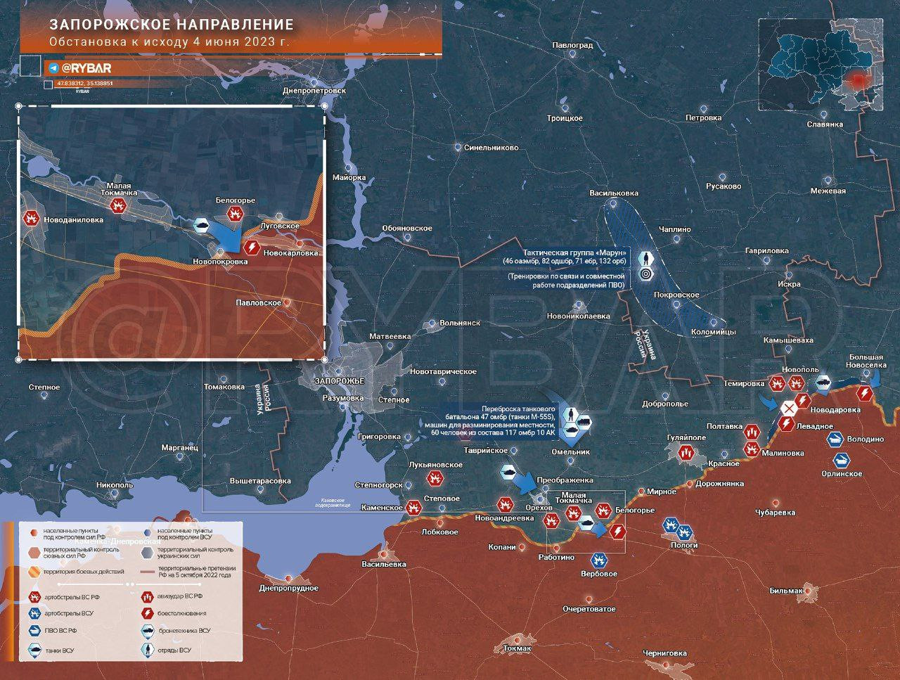 Карта боевых действий: Массовая разведка боем на Запорожском направлении обстановка по состоянию на 11.00 5 июня 2023 года