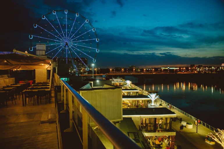С открытого бассейна на крыше открывается вид на обновлённую набережную реки Миасс