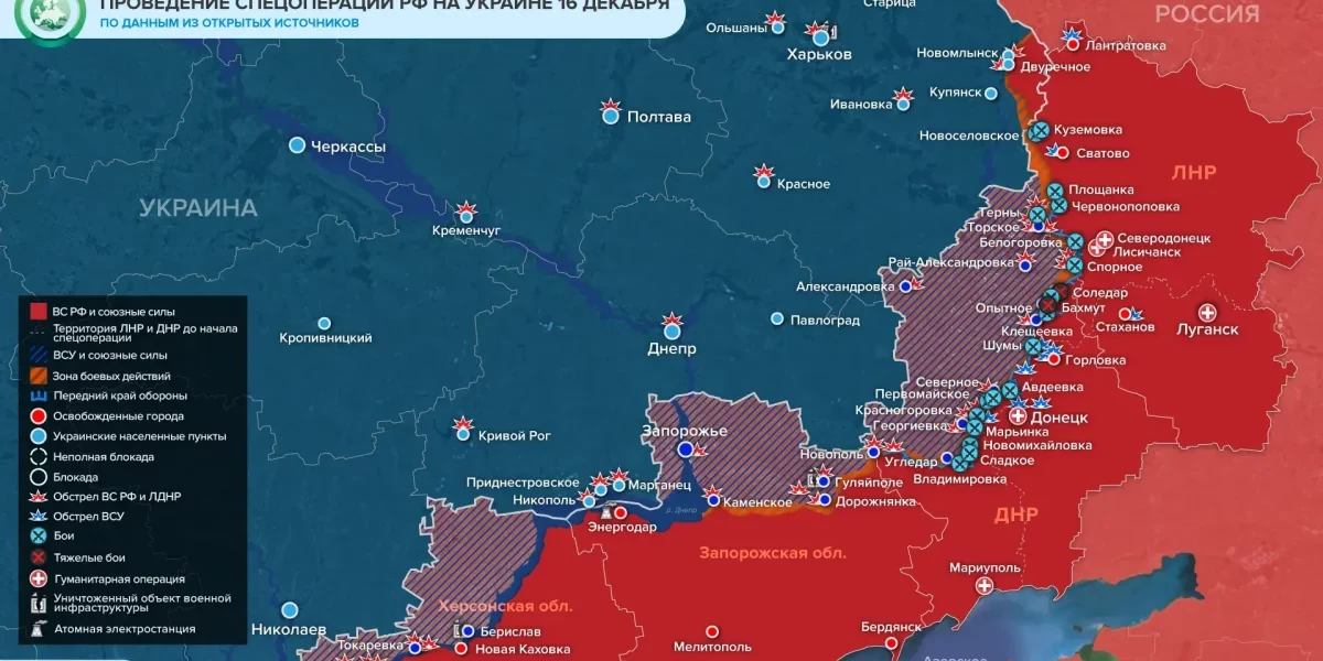 1. Реальная карта боевых действий на Украине на 17 декабря 2022: ситуация на сегодня, последние новости специальной военной операции (СВО) с передовой